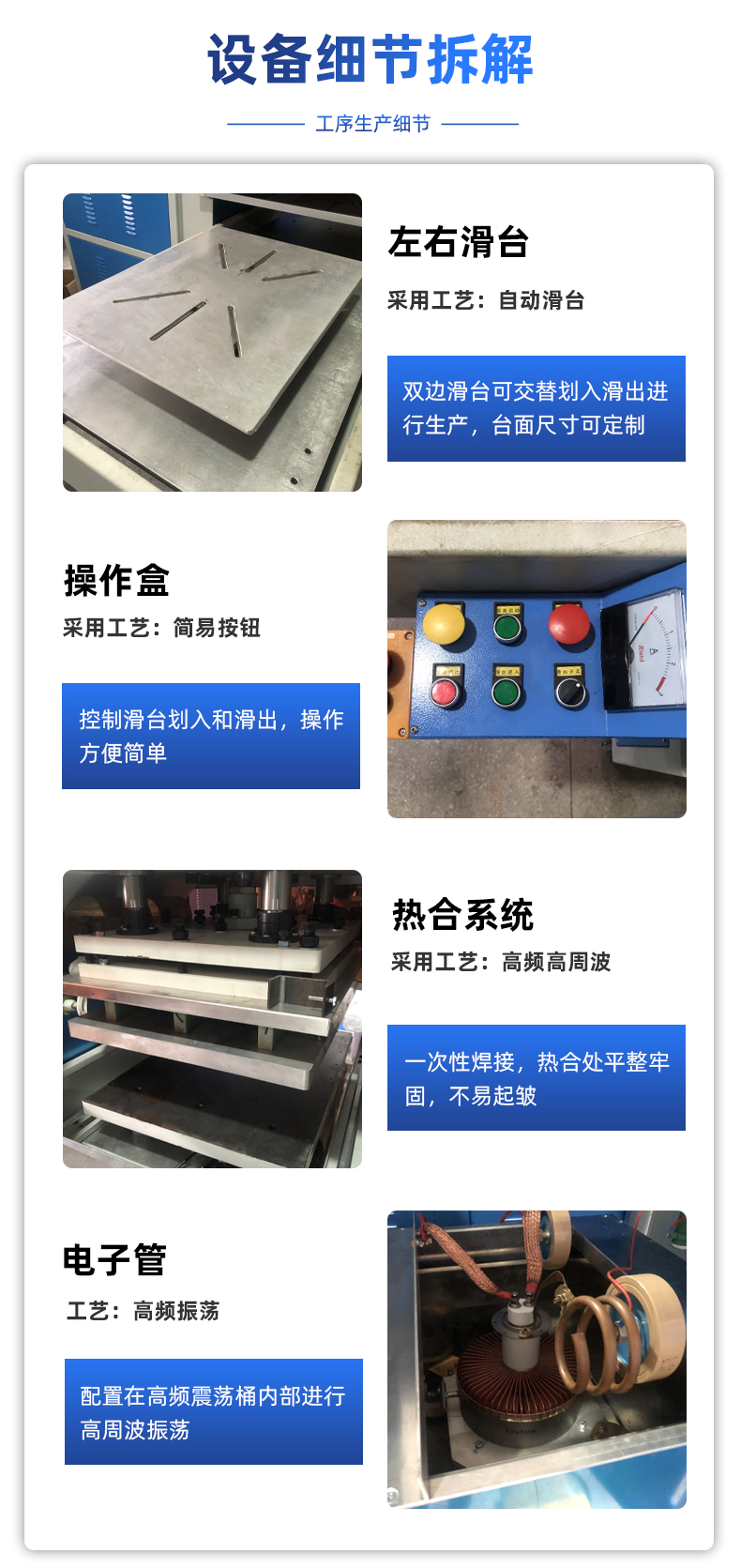 能馬桶蓋座鋁箔加熱片熱合機(jī) 咨詢熱線:+8613564342156 在線咨詢 產(chǎn)品詳細(xì) 本信息鏈接地址:/gaozhoubo/427.html 標(biāo)簽: 相關(guān)推薦: 上一篇:PVC運(yùn)輸液體袋高頻熱合機(jī) 下一篇:PE+無(wú)紡布升溫毯熱壓機(jī) 用手機(jī)看 拍下二維碼,信息隨身看 試試用手機(jī)掃一掃, 在你手機(jī)上繼續(xù)觀看此頁(yè)面。