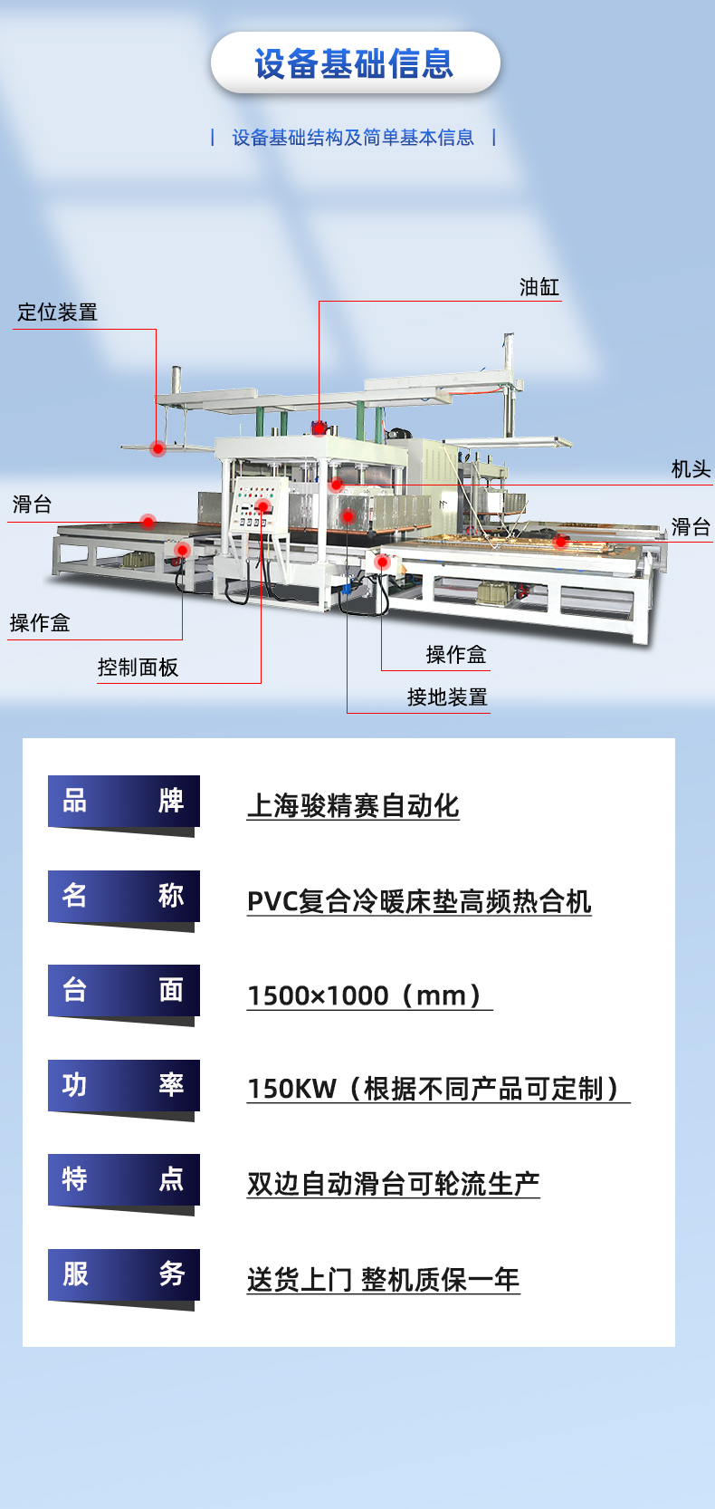相關(guān)推薦 PE+無紡布升溫毯熱壓機(jī) 雙邊滑臺(tái)珊瑚絨地墊壓花高頻熱合同步熔接機(jī) 蓬房膜材高頻焊接機(jī) 12kw膜結(jié)構(gòu)高頻熔接機(jī) 左右自動(dòng)滑臺(tái)泡殼包裝機(jī)廠家供應(yīng)高周波熱合機(jī)